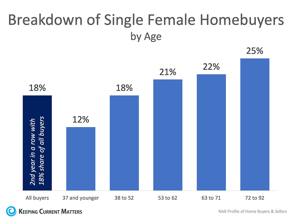 According to the 2018 Home Buyer and Seller Generational Trends Report by the National Association of Realtors, one in five homebuyers in the U.S. were single females (most of them part of the baby boomer generation) as you can see in the graph below:
